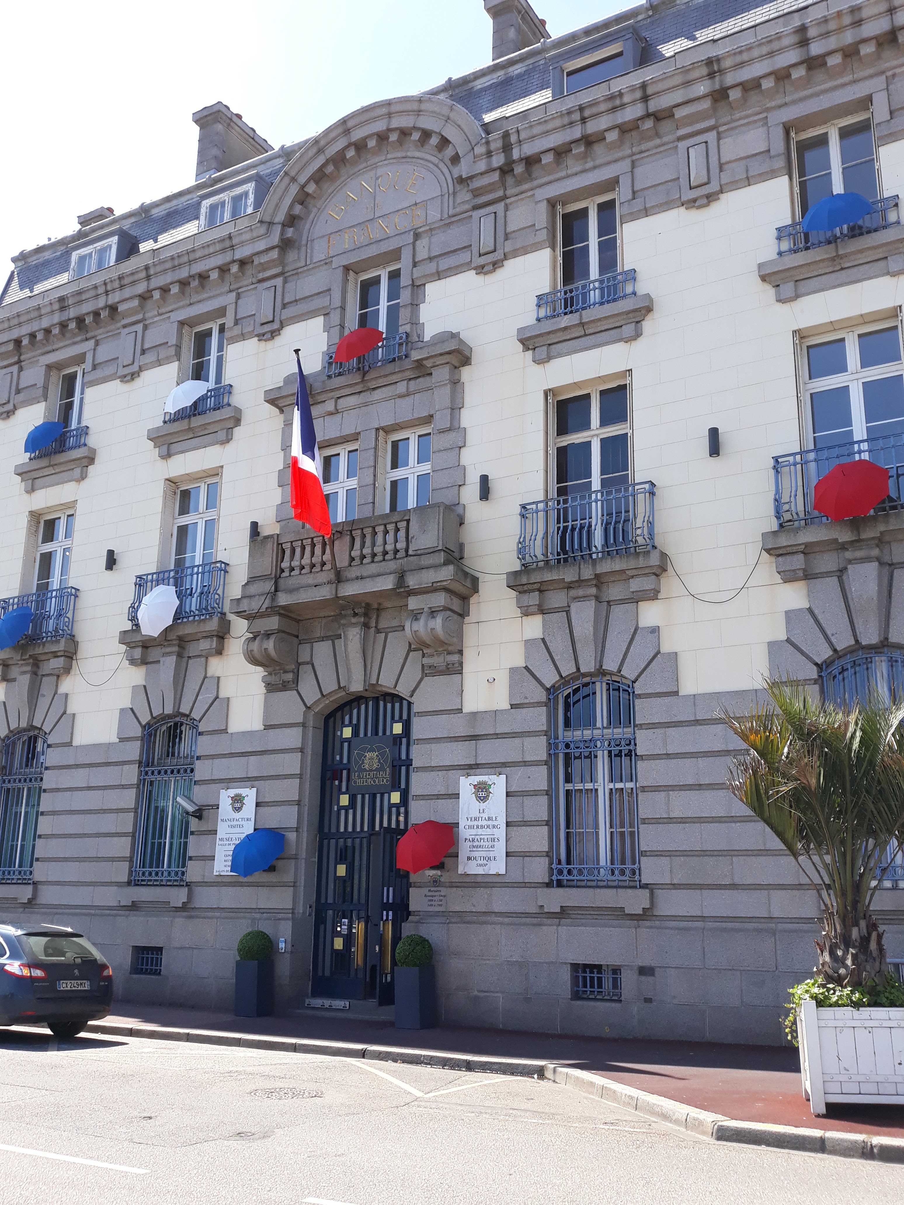 Dans l'ancienne banque de France, au décor magnifique avec des hauteurs de plafond immense, une baie vitrée qui donne sur l'atelier. Large choix de ces fameux parapluies de Cherbourg illustrés dans le cinéma français. Parapluie de très haute facture attention les prix ne sont pas ce que l'on trouve dans le commerce habituel mais c'est parapluie résiste au vent et bien sûr à la pluie.